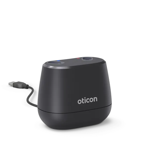 Ulepszona technika ładowania stykowego – ładowanie stykowe jest szybsze niż ładowanie indukcyjne, a nowa ładowarka zapewnia najszybsze ładowanie aparatu słuchowego Oticon w historii. Jest też bardziej niezawodna, ponieważ zawsze, gdy aparaty są w ładowarce, a wskaźniki LED świecą się na pomarańczowo, ładowanie odbywa się do pełnej pojemności.