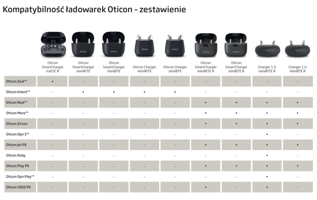 Ładowarka stacjonarna Oticon miniBTE R (Intent) jest kompatybilna z aparatami Oticon:
